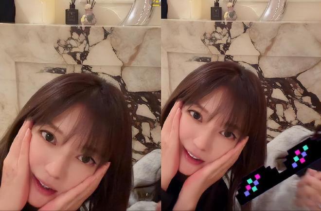 能看出郑爽应该是精心打扮了一番的,她纹了眉,戴了美瞳,还画了眼线。郑爽的头发也湿漉漉的,不知是不是刚洗好头。她穿着一件粉色的卫衣,只露出一个头,身后的白墙被强烈的光线照着,看不清具体的装修。